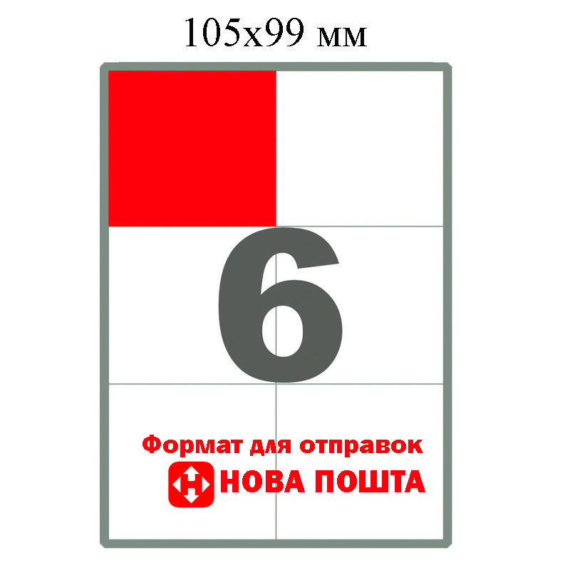 Етикетка самоклейна А4 (6 шт.) 105х99мм — для нової пошти